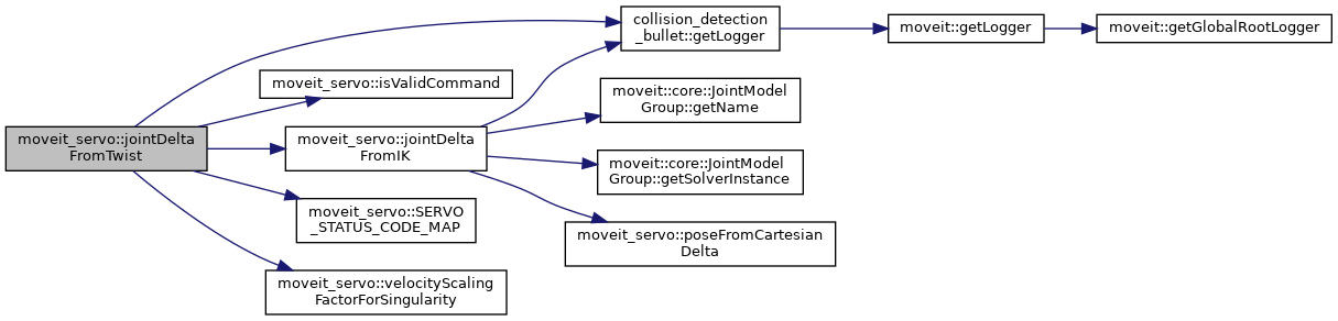 | JointDeltaResult | jointDeltaFromTwist (const TwistCommand &command, const moveit::core::RobotStatePtr &robot_state, const servo::Params &servo_params, const std::string &planning_frame, const JointNameToMoveGroupIndexMap &joint_name_group_index_map) |