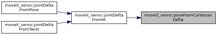 | JointDeltaResult | jointDeltaFromPose (const PoseCommand &command, const moveit::core::RobotStatePtr &robot_state, const servo::Params &servo_params, const std::string &planning_frame, const std::string &ee_frame, const JointNameToMoveGroupIndexMap &joint_name_group_index_map) |